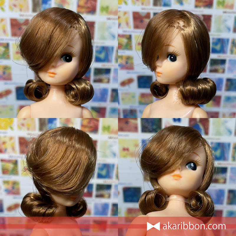 状態の良い初代リカちゃんでしたが、前髪が非常に長くセットに苦労しました。